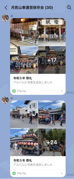 グループLINEには、まだまだ たくさんの祭礼の様子のプライベートな投稿写真もあります