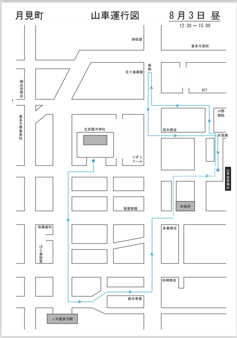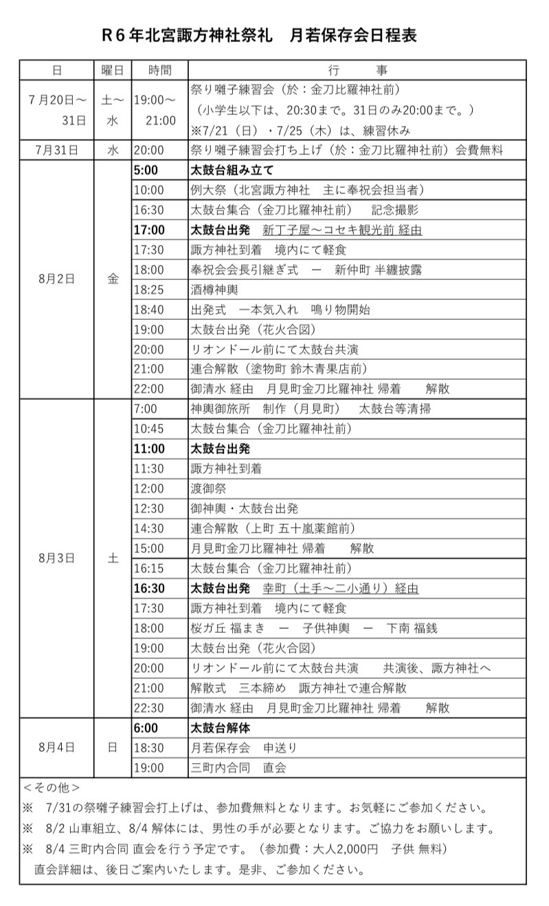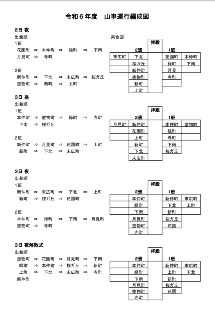 | 令和6年8月2日・3日の「月若の山車の運行予定表」です |