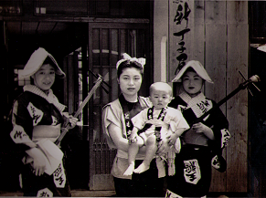 | 私も小さかった頃、芸者さんに抱かれて祭礼に連れていってもらっていました。 写真の王将のゆかた、すごく懐かしいです。 |